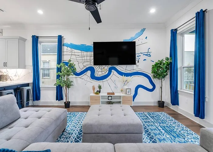 De Lakefront est accessible en moins de 17 minutes en voiture et les attractions naturelles comme le Parc historique national et réserve Jean Lafitte sont à 2 km. Les sites culturels à proximité incluent le Musée d'Art de La Nouvelle-Orléans, situé à 3 km. Le logement Villa Maison Bleue - Luxe Nola Living se trouve à environ 3 km de lieux familiaux tels que le Parc d'attractions Carousel Gardens.